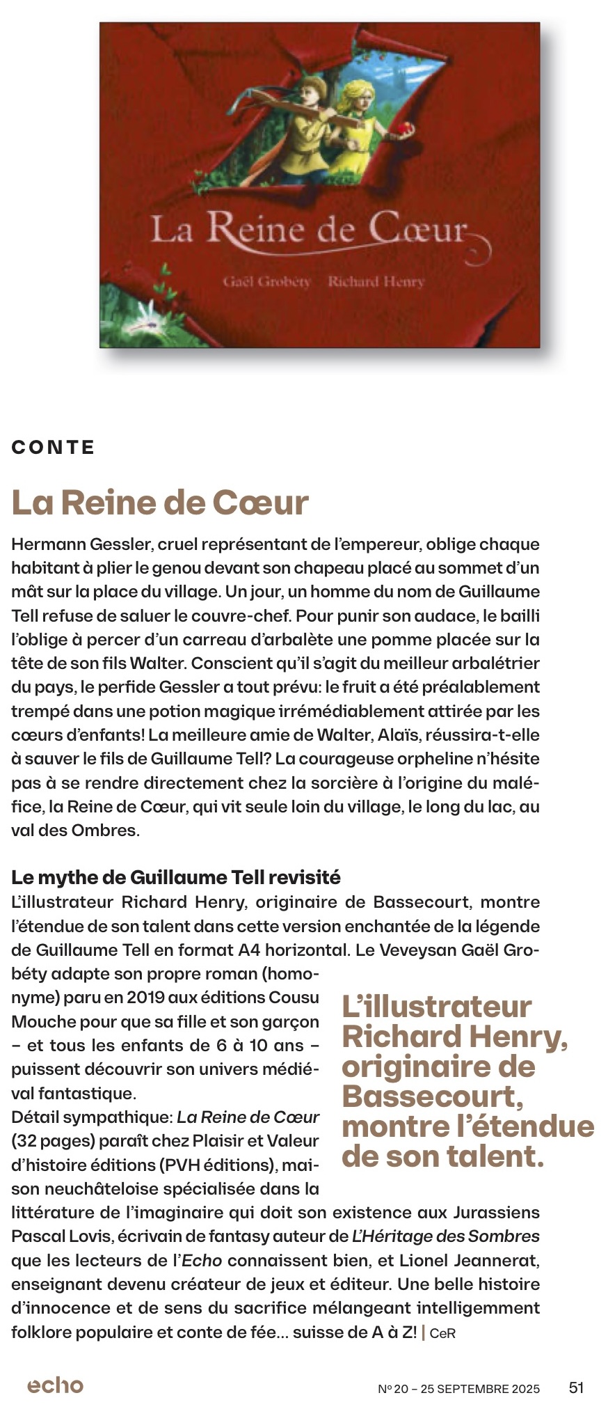 L’hebdomadaire Echo Magazine a joliment présenté La Reine de Cœur illustrée dans son numéro du 20 septembre 2025.